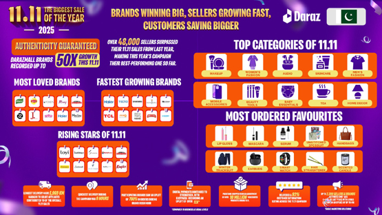 Ehsan Saya, Managing Director Daraz Pakistan, said, “We are proud of how 11.11 has evolved into an annual moment that brings Pakistan’s digital economy to life. It is when customers discover new favourite brands, DarazMall partners see the strongest results of their year and small businesses from every corner of the country find a national stage. The continued shift of shoppers towards trusted online channels, especially for branded products on DarazMall, shows how deeply e-commerce is now woven into everyday life. This year’s 11.11 reflects how much potential Pakistan has when technology, logistics and digital payments work together. We remain committed to investing in better service, stronger protections and more opportunities for brands, sellers and customers so this growth contributes meaningfully to the wider digital economy.”
